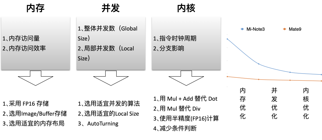 MNN 的架构设计可以降低性能优化的成本,但性能优化本身仍然是MNN中最艰难复杂的工作,需要深入理解模型结构、算子实现、硬件架构,分析模型运行中的计算冗余,并将其尽可能地压制。