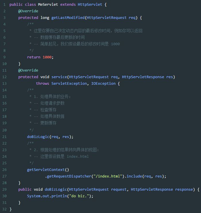 所以它不会帮我们在响应中加上Last-Modified,我们必须自己来做这件事,我们小小地修改一下MeServlet: