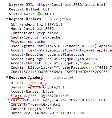 • 当浏览器第一次发起请求时(请求头中没有If-Modified-Since),server会在响应中告诉浏览器这个资源最后修改的时间(响应头中的Last-Modified)。(见图一)