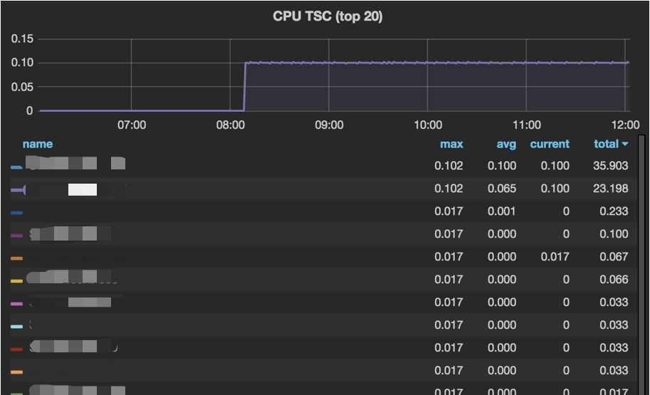 在排查cadvisor导致的延迟的过程中,还发现一部分用户报障的超时,并不是cadvisor导致的,主要表现在没有Housekeeping的日志,并且perf结果看上去完全正常,说明没有调度方面的延迟,但从TSC的获取上还是能观察到异常。