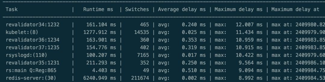 2、另外一台B宿主机上,我们发现即使将所有的实例都清空,perf依然能录得比较高的延迟。