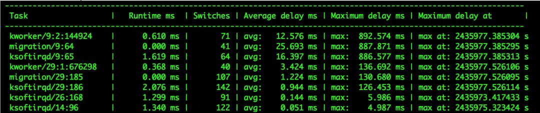 确定问题后,解决起来就简单了。将所有宿主机的绑核去掉,延迟就消失了,以下图4是D厂的机型去掉绑核后开机26天perf的调度延迟,从数据上看一切都恢复正常。