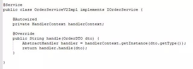 现在可以了解到,我们主要的业务逻辑是在处理器中实现的,因此有多少个订单类型,就对应有多少个处理器。以后需求变化,增加了订单类型,只需要添加相应的处理器就可以,上述OrderServiceV2Impl完全不需改动。