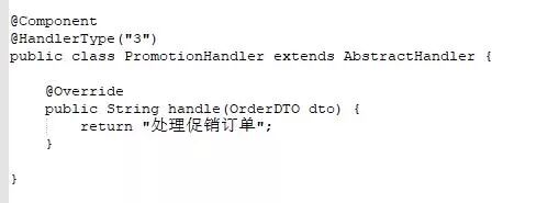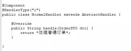 首先每个处理器都必须添加到spring容器中,因此需要加上@Component注解,其次需要加上一个自定义注解@HandlerType,用于标识该处理器对应哪个订单类型,最后就是继承AbstractHandler,实现自己的业务逻辑。