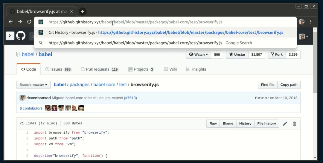 这个扩展可以很炫酷地展示 GitHub 中任意一个文件的历史修改情况。
