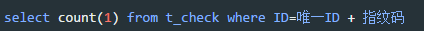 • 返回如果为0 表示没有操作过,那业务操作后就可以insert into t_check(唯一ID+指纹码)