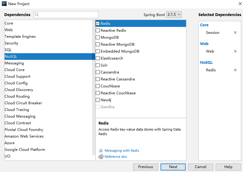 首先 创建一个 Spring Boot 工程,引入 Web、Spring Session 以及 Redis: