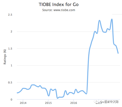 在 2017 年 9 月的 TIOBE 的 GO 语言指数,可以清楚地看到 2016 年以来受欢迎程度令人难以置信的跳跃,更做为一年中评分上升最高的编程语言,被冠名为 TIOBE 的编程语言 2016 名人堂冠军。 目前它在月度排行榜上排名第 17 位,一年前排名第 19 位,两年前排名第 65 位。