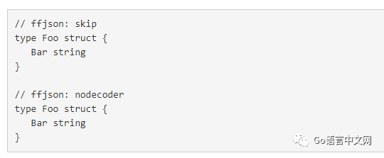 另外,如果有些结构,不想让 ffjson 生成代码,可以通过增加注释的方式