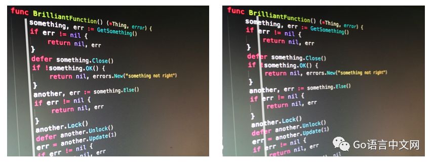 在近期伦敦举行的 Golang 英国会议 上,我在地道的Go 语言窍门 交流(幻灯片)中讲到关于代码中的缩进线, 我想在这里稍微解释一下。
