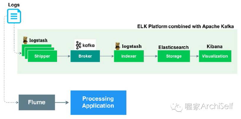 我们在架构中使用ELK ,因为LEK的三个产品无缝集成,能够比使用Flume给我们更多的价值 。