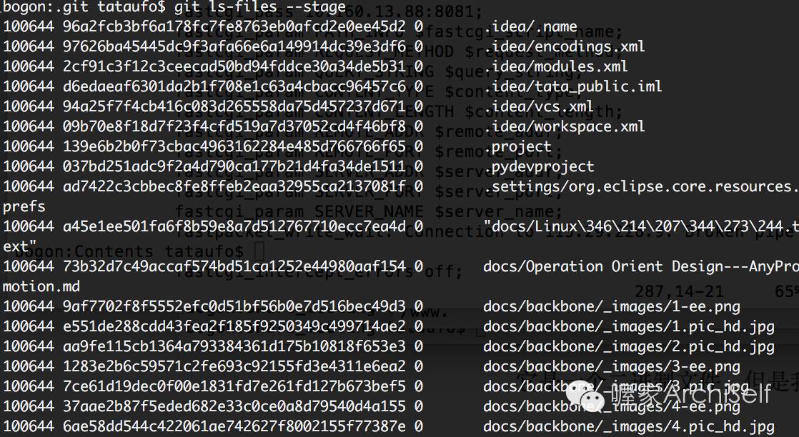 它是一个二进制文件,第四列是文件名,第三列是文件的冲突状态,第二列指的是文件的 Blob。