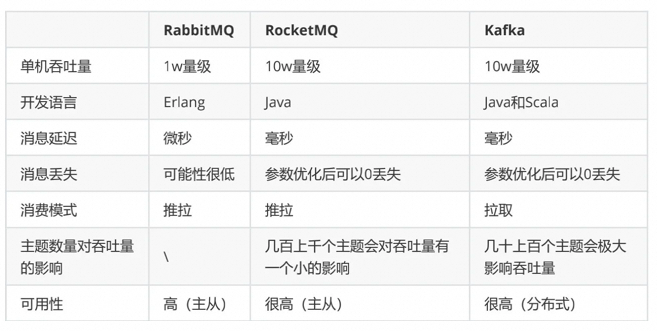 中小型公司,技术挑战不是特别高,用 RabbitMQ (开源、社区活跃)是不错的选择;大型公司,基础架构研发实力较强,用 RocketMQ(Java二次开发) 是很好的选择。