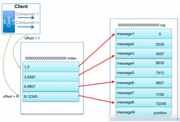 • .log追加是顺序写入的,文件名是以文件中第一条message的offset来命名的