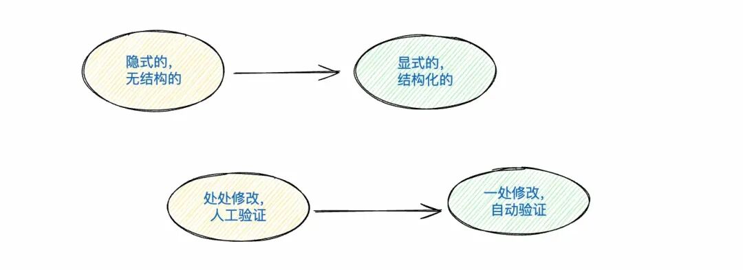 - 结构化的 or 无结构的。软件/配置/服务的声明是否有清晰一致的结构,结构化的内容更容易理解,管理成本低,反之则高。例如 Maven 的 POM 清晰定义了 Java 依赖的声明结构,相比之下,各应用的启动脚本是无结构的,可以没有约束地定义,理解成本很高。清晰的结构通常是一种比较合理的抽象。