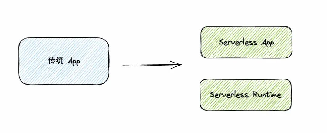 Serverless 这个词被赋予了非常的涵义,这里指的是通过把原来的应用分为 App 和 Runtime 两层,并实现这两层的单独维护演进。这种方案的核心思路是,通过让大量的 App 在运形态复用相同的 Runtime(这里包含了基本的 OS, JDK,Pandora),实现基础设施的收敛(一致);同时,通过相关的调度技术实现 Runtime 可独立升级,实现了原本需要大量重复的工作在一处修改就能完成。这个思想在云的 FaaS 产品上得到了广泛的应用,同时在内部业务中 Aone Serverless 也持续做了很多工作。