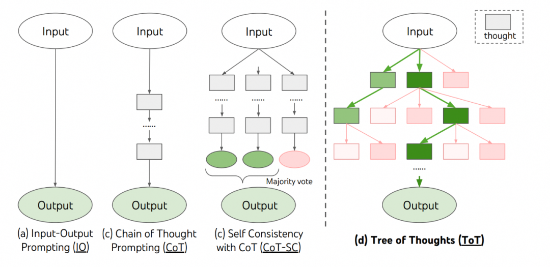 Tree Of Thought,思维树。TOT维护着一棵思维树,解答问题的过程有一系列中间步骤。使用TOT,AI能够对推理的中间步骤进行评估与验证。