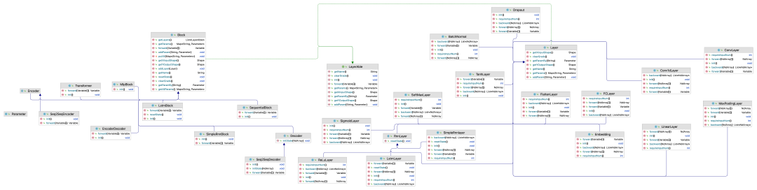 3、nnet包:核心类Layer与Block表示神经网络的层和块,任何复杂的深度网络都是依赖这些Layer与Block的堆叠而层。实现了一些常用的cnn层rnn层norm层以及encode与decode的seq2seq架构等等。