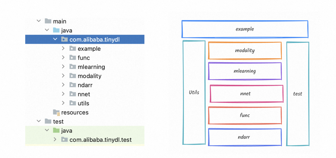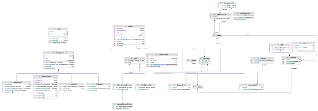 TinyDL-0.01[5]如它的名字一样,是一个最小化实现的轻量级深度学习框架(Java实现)。相比与其他实现:1)极简,基本上零二三方依赖(为了不想引入Junit,我有了不写单测的理由了);2)全栈,从最底层的张量运算到最上层的应用案例,3)分层易扩展,每一层的实现都包括了核心概念和原理且层边界清晰。当然不足之处更明显:功能简陋性能较差。