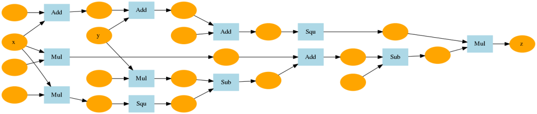 计算图被定义为有向图,其中节点对应于数学运算, 计算图是表达和评估数学表达式的一种方式。例如, 有以下等式 g=(x+y)∗z,绘制上述等式的计算图。