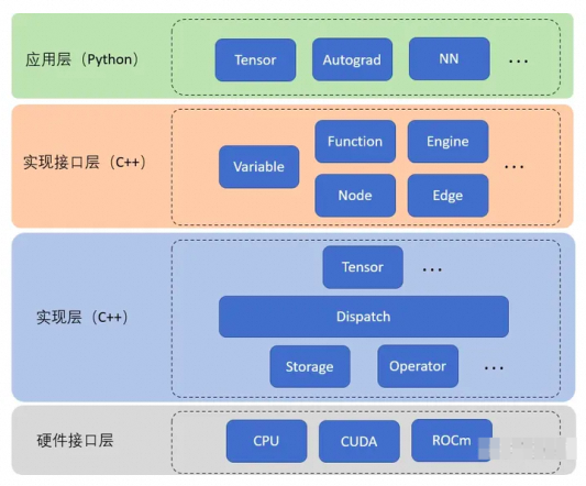 这里也具体参考当下最流行的深度学习框架PyTorch,大体分成四层(来自知乎):