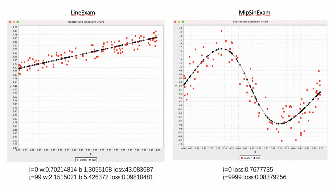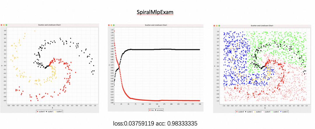 6、example包:一些简单的能跑通的例子,主要包括机器学习的分类和回归两类问题,有曲线的拟合,螺旋曲线的分类,手写数字的识别以及序列数据的预测。