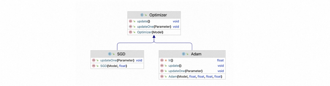 机器学习中常用的优化器常用的有:1)随机梯度下降法(SGD),每次只使用一个样本来计算梯度和更新参数,相比于梯度下降法,计算速度更快。2)批量梯度下降法,每次使用整个训练集来计算梯度和更新参数,收敛速度相对较慢,但稳定性较好。3)动量优化器,通过引入动量项来加速梯度下降的更新过程,可以在参数更新时考虑之前的梯度变化情况,从而减少震荡。4)AdaGrad,根据参数的历史梯度进行学习率的自适应调整,对于频繁出现的特征会降低学习率,对于稀疏出现的特征会增加学习率。5)Adam,结合了动量优化器和RMSProp的优点的优化器,Adam优化器通常具有较快的收敛速度和较好的性能等等。目前tinyDL实现了最常用的SGD和Adam: