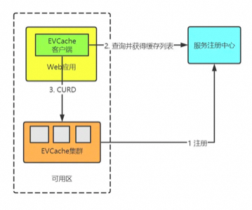 1、集群启动时,EVCache向服务注册中心(Zookeeper、Eureka)注册各个实例