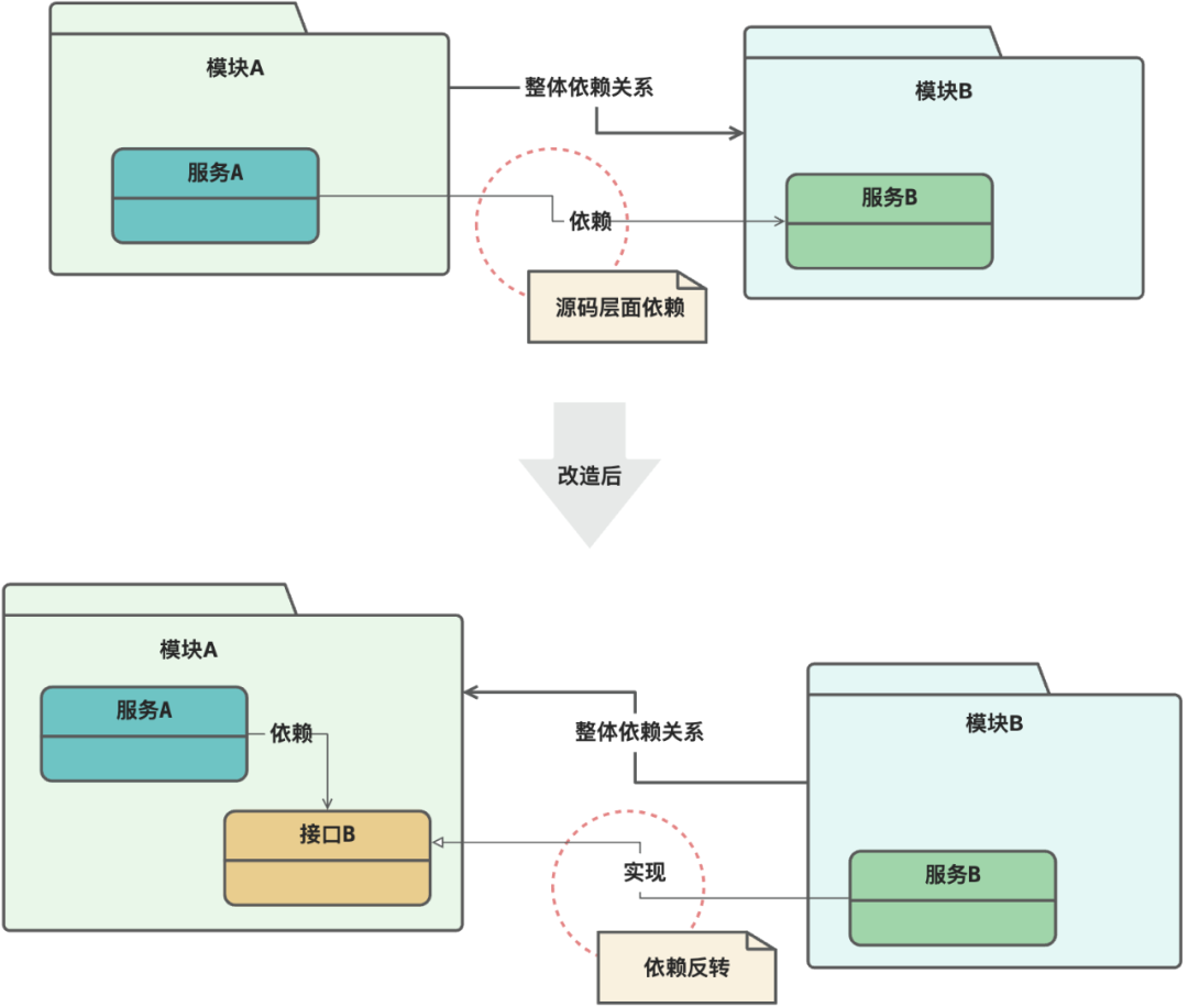利用依赖反转实现细节无关原则,体现到代码上如下所示: