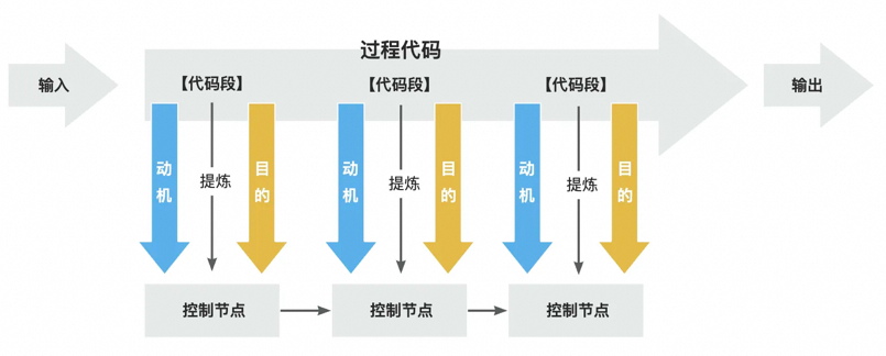 这一点几乎是致命的,由于控制流节点只描述目的和动机,过程的实现方式必然不止一种,假如后期运维时需要对控制流节点的过程进行二次扩展,就会立刻回到堆叠过程的混沌状态,可读性急剧下降。关于这一点,控制流的第二特性:细节无关原则给出了解法。