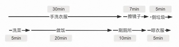 问题:小明和妈妈干完所有这些事情最少用多长时间?