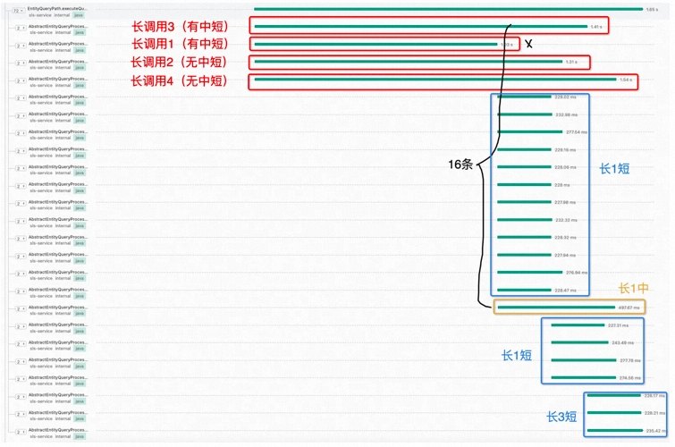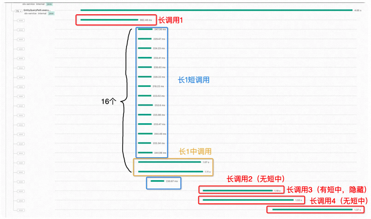 长短调用的顺序有问题。看上去每一个长调用执行完就执行它的中短调用了。应该首先执行所有长调用然后再执行各个长调用下属的中短调用。