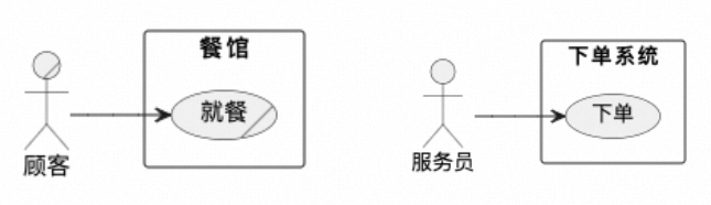 1.系统执行者:服务员,虽然顾客作为餐馆这个组织的业务执行者,但是与下单系统直接交互的是服务员,所以服务员才是点餐系统的系统执行者;