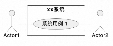 用例是用一个椭圆表示。在UML 语法中是usecase ,业务用例和系统用例的两种写法如下: