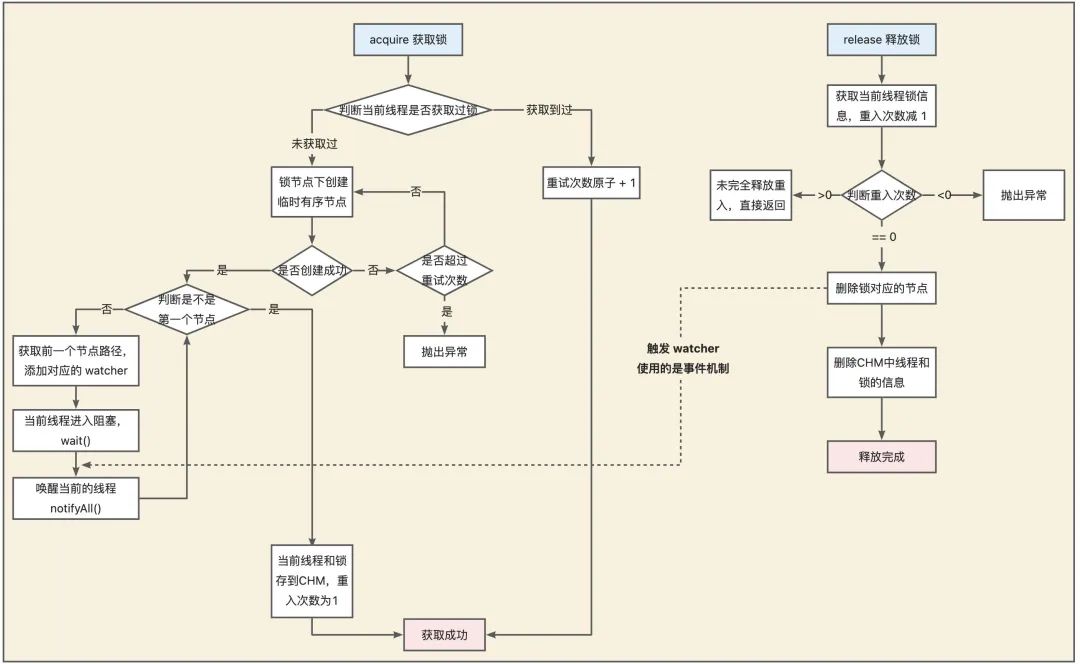 - 使用zookeeper的watcher + 有序临时节点来实现可阻塞的分布式锁