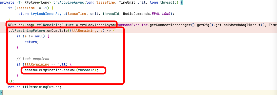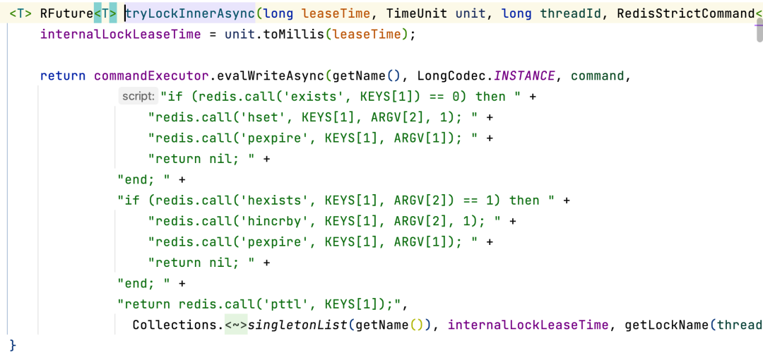 * leaseTime 锁的持有时间,超过这个时间锁会自动失效(值应设置为大于业务处理的时间,确保在锁有效期内业务能处理完)
