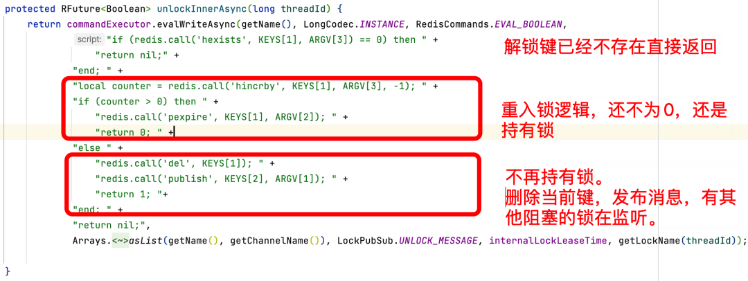 错误的原因还是因为解锁的逻辑不是原子性的,这里可以参考Redisson的解锁逻辑使用lua脚本实现。