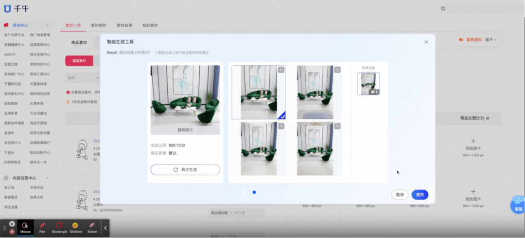 ,仍然有很多环节靠“人”驱动的,上面提到素材制作也仅仅是解决了多尺寸素材的问题,像多场景图生产、店铺封面等制作仍然需要去突破。