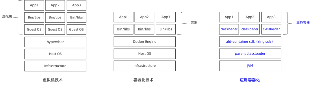 我们发现虽然实现单一能力点的扩展,但是部署、发布过程还是要跟着这个系统一起进行,功能变多了以后,系统也变得臃肿起来。为此,我们参考了docker容器的方案,实现了一套JVM级别轻量级容器解决方案,在代码层面把平台基础功能和业务定制扩展功能分开,扩展功能可以以插件形式实现热部署。这个方案可以帮助迭代和维护效率进一步提高,让调试/部署的耗时减少10倍以上。