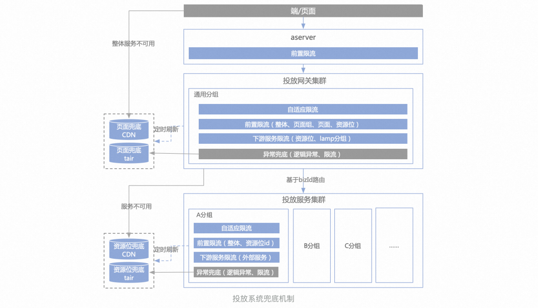 在营销中高并发读的场景,主要是会场、频道等页面导购场景。这种场景面向都是用户端的流量,很多时候流量都是尖刺型的,在峰值瞬间比次峰值甚至会高几倍。所以这里设计上主要是避免预期外洪峰流量的影响,这里业务容灾兜底方案就比较重要了。目前投放系统又是多级限流做到自我保护,基于多级兜底机制保障保底业务表现。最悲观的情况,整个系统都挂了还是能保证最兜底的业务表现。在21年春晚的时候,脉冲流量远超预期,超过40%的请求都被限流了,但是用户端页面透出依然是正常的,也不影响用户进一步抽奖的动作。