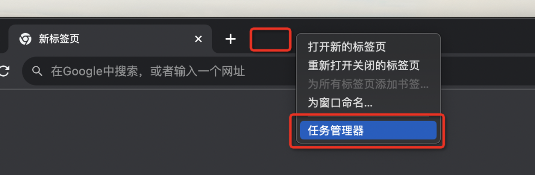 - tab栏空白处右键,选择任务管理器,打开任务管理器面板