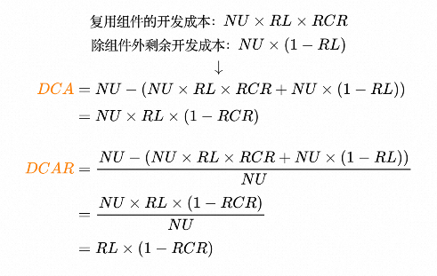 对于集成方而言,可以计算因复用节省的成本(DCA,Development Cost Avoidance)以及复用后的成本节省比占比( DCAR,Development Cost Avoidance Ratio):