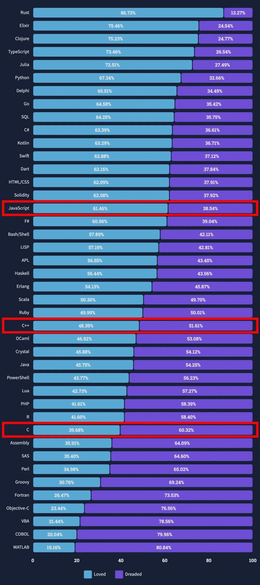- Stackoverflow 2022 survey:https://survey.stackoverflow.co/2022/?utm_source=so-owned&utm_medium=announcement-banner&utm_campaign=dev-survey-2022&utm_content=results#section-most-loved-dreaded-and-wanted-programming-scripting-and-markup-languages