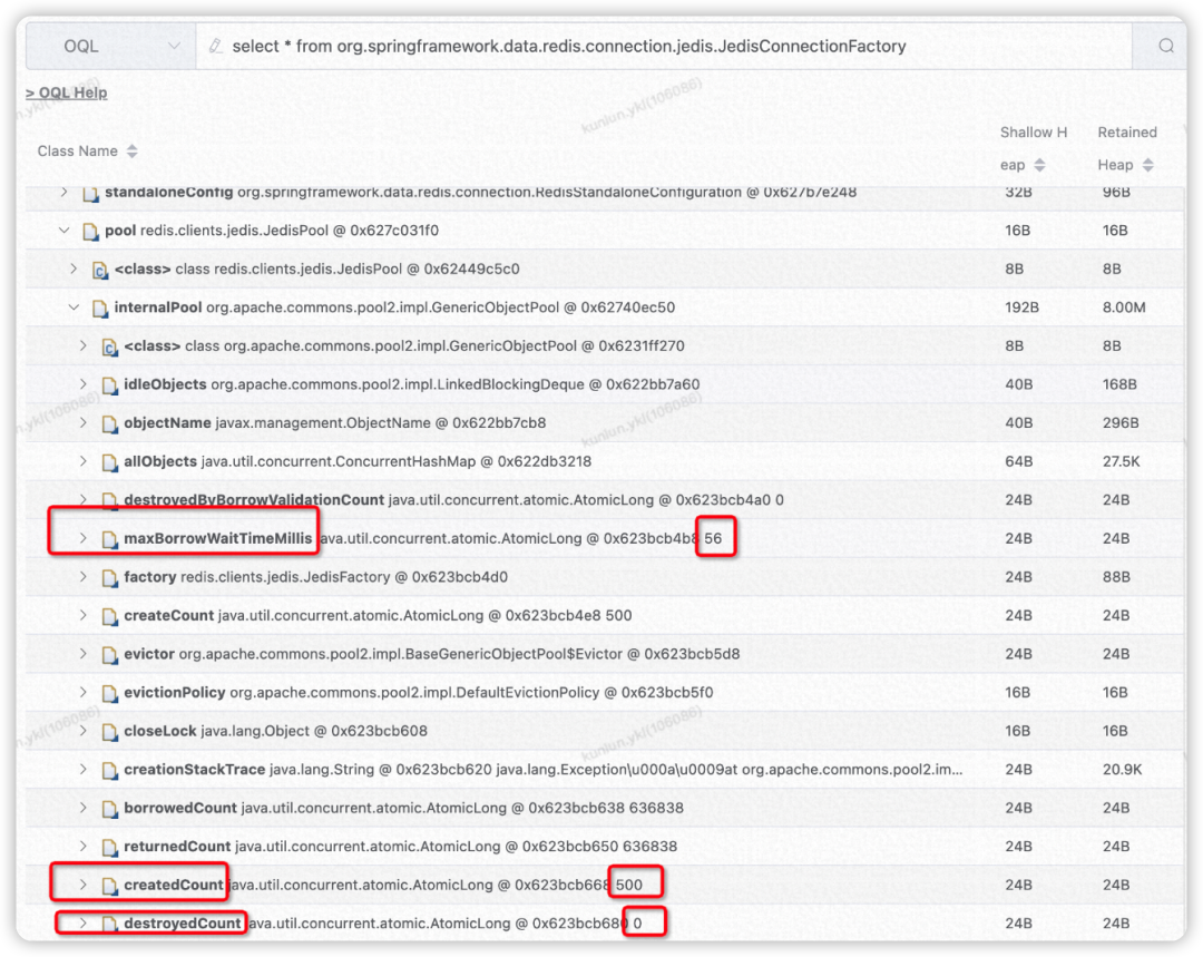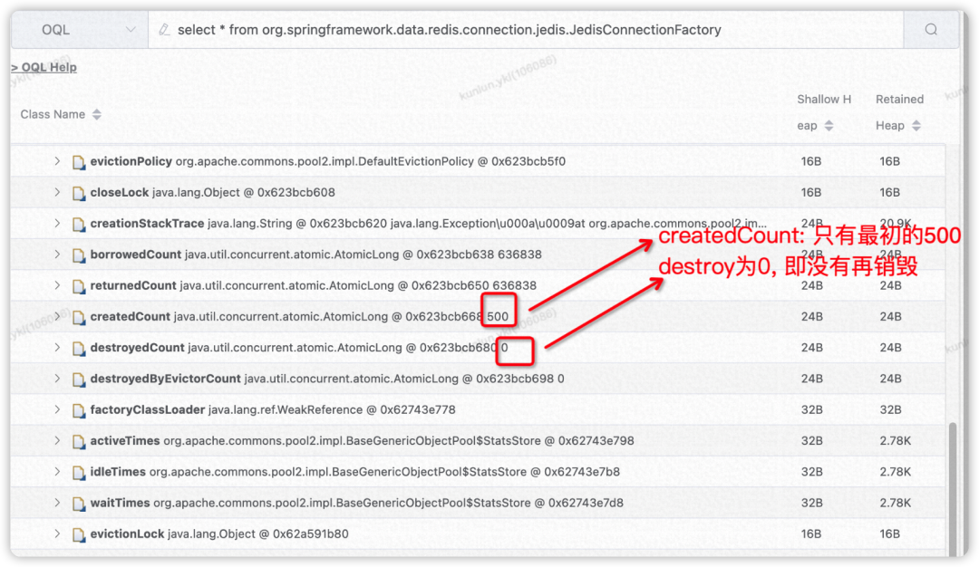 这里勘误 一次访问Redis延时高问题排查与总结 文中最终查看池内对象新建&销毁量, 需要看 createdCount 而不是 createCount 值. 当时有点儿得意忘形导致看错。