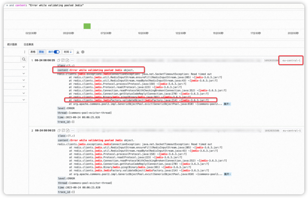 如下, 这是近期发生的Redis主备切换故障, 如下应用日志, 都是基于Jedis的定时validate&evict机制才使得连接池内可以将故障的连接删除&重建的: