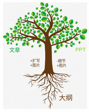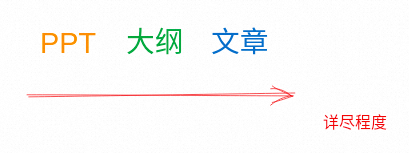 总的来讲就是大纲比 PPT 要详细一点,而文章又比大纲细致一点。