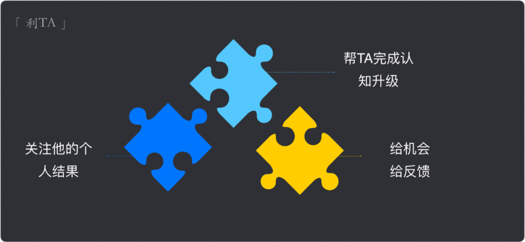 利TA就需要关注TA的个人结果,可以告诉TA学会放弃,放弃TA已经非常熟练的事情找个不那么熟悉的事情锻炼新的能力;也可以告诉TA负责的事情个人结果不明显,没有形成体系化的知识结构,需要写篇文章,或写个PPT,来验证自己的沉淀。