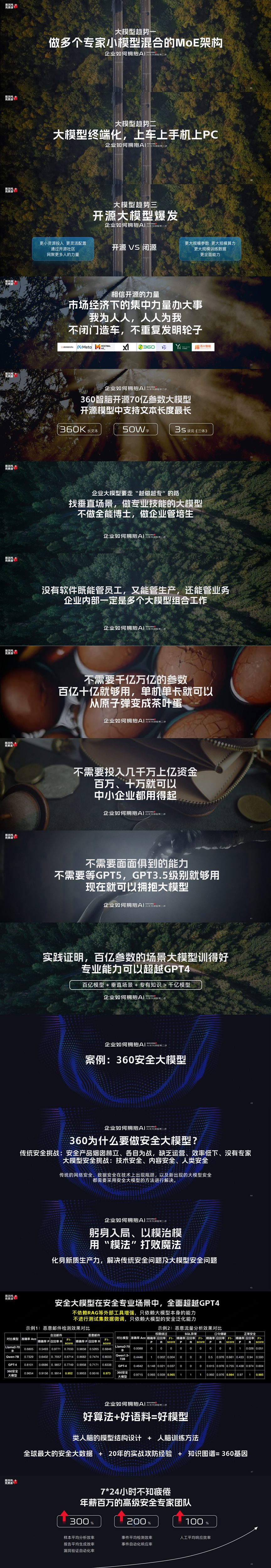 结合在一起,所以安全会出来很多问题,那如何做到那大模型可靠、向善、可信、可控?所以360提供了一个安全大模型,就专⻔用来解决大模型安全问题。