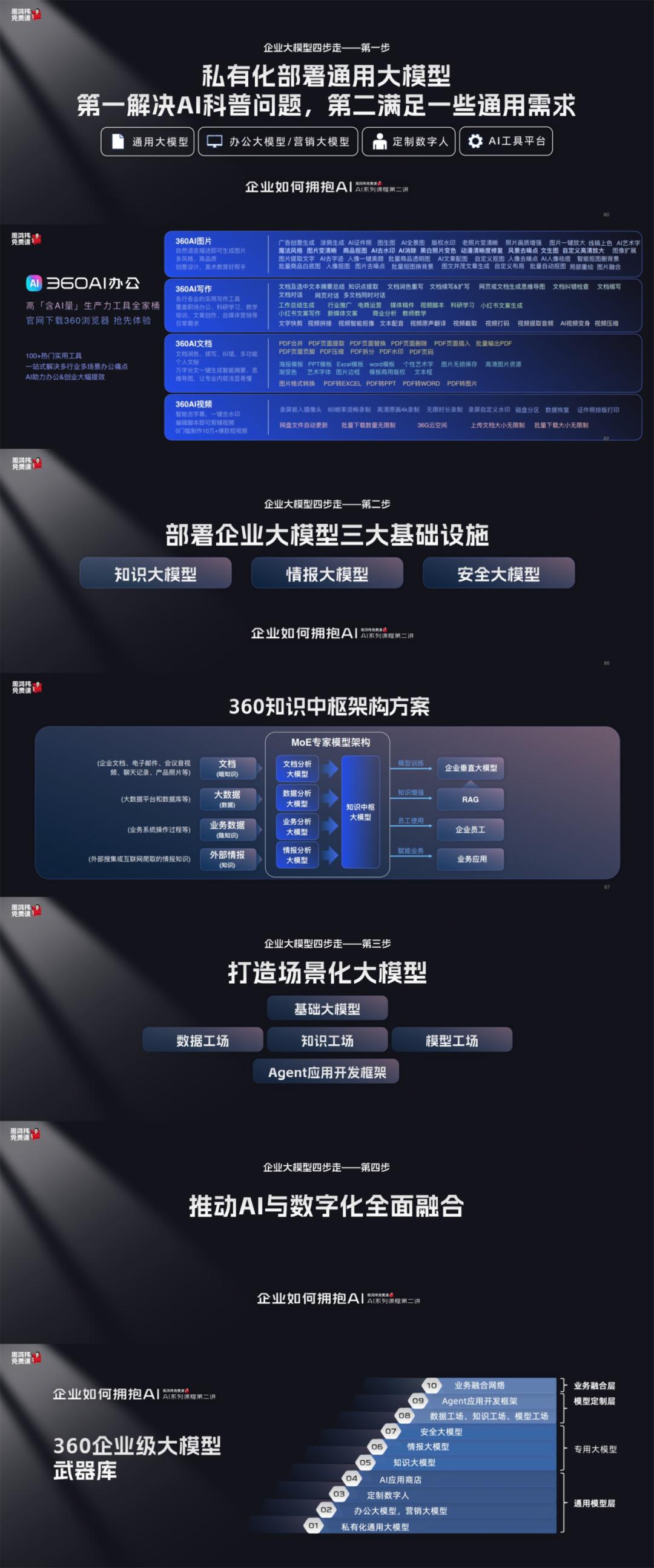 360AI大会员,然后再往上可以选知识大模型、情报大模型、安全大模型,然后再往上是开发自己的大模型,和业务融合起来。