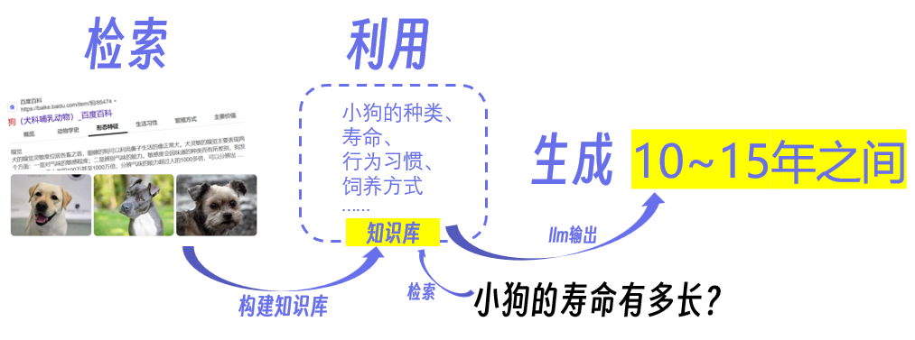 2.利用(Utilization):接下来,你会分析这些搜索结果,并提取其中的重要信息,包括狗狗的种类、行为习惯、饲养方式等等。你将这些信息整理成一个知识库,这个知识库就像一本百科全书,里面包含了各种关于小狗的知识点。